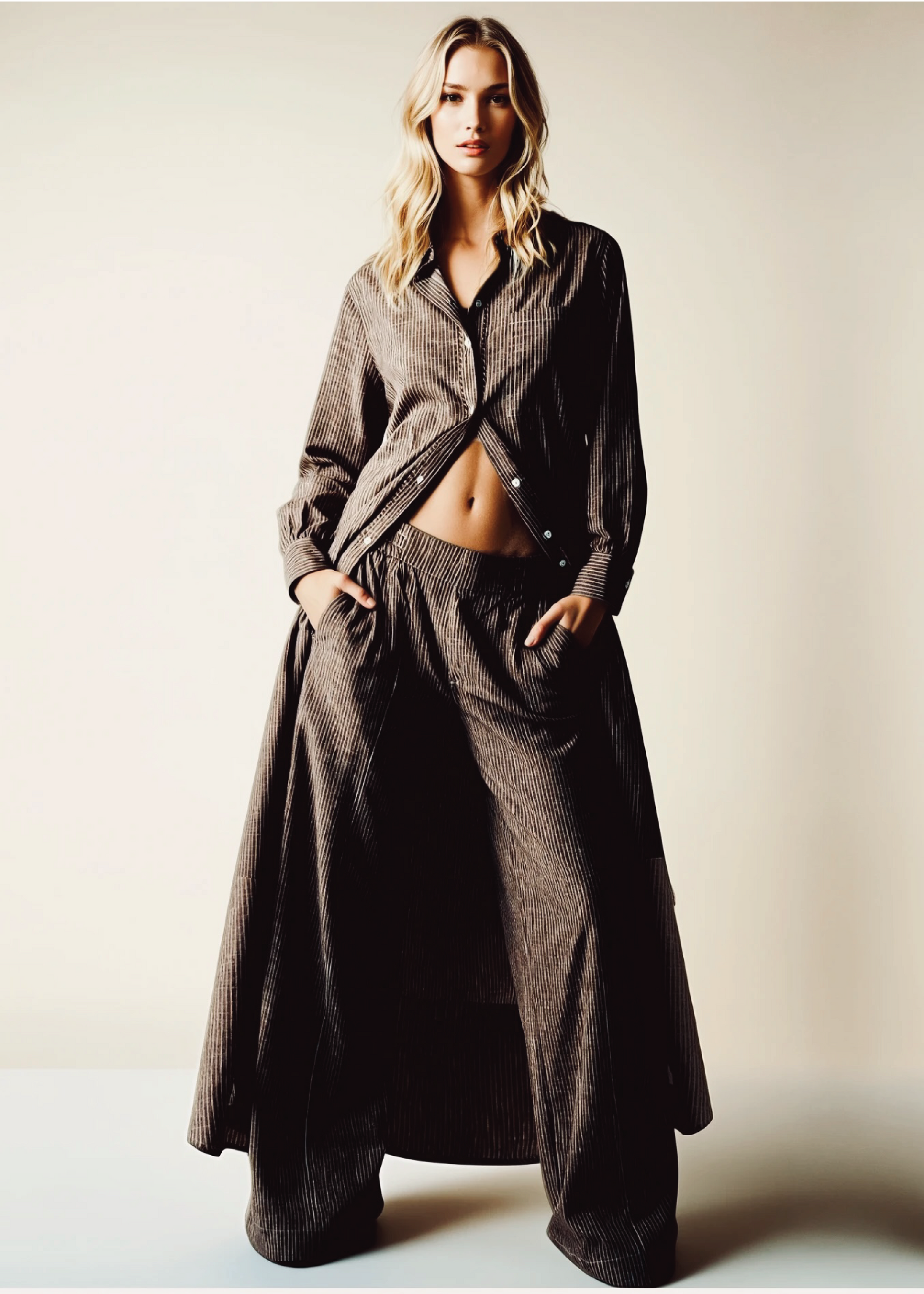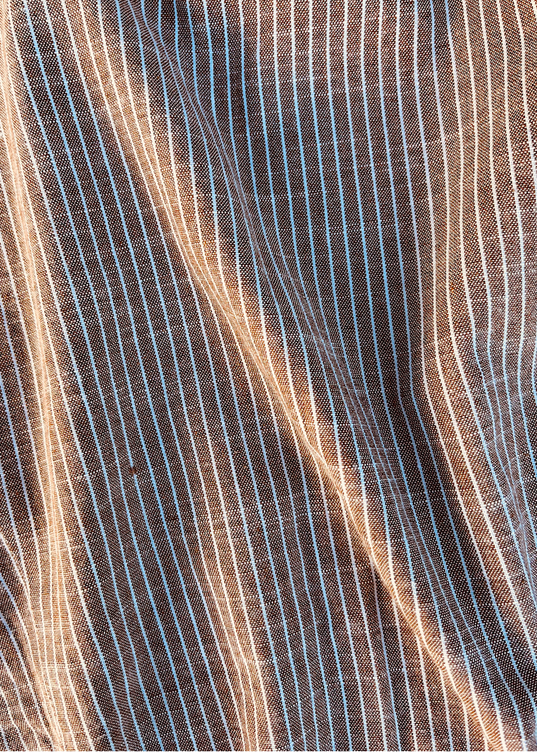 Wide-leg palazzo pant with front pin tucks, side pockets, and a flat front waistband. Elastic at the sides and back for an easy, tailored fit. Crafted from an entirely natural fiber cotton-linen blend fabric.